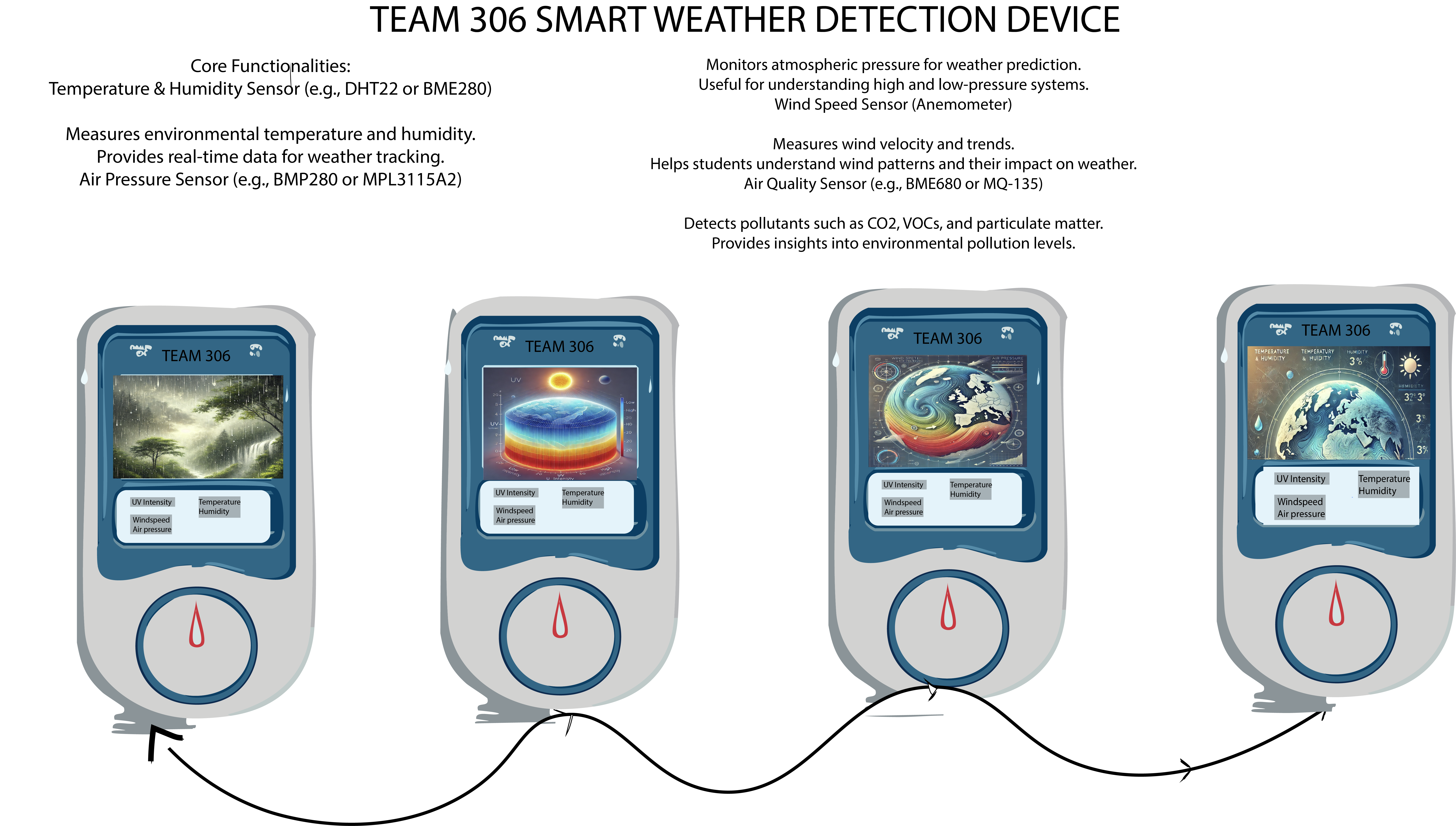 The Smart STEM Weather Station is designed to captivate and educate museum visitors by providing real-time environmental data through an interactive interface. This design prioritizes accessibility and engagement, addressing visitor needs with features that make learning both hands-on and straightforward. For example, the station's LCD screen and physical buttons create an easy-to-navigate system suitable for all ages. Additional features like color-coded LED indicators and user-friendly alerts simplify the interpretation of complex data. The station will also include instructional elements such as on-screen prompts, and demonstrations illustrating how the sensors work to collect data.
